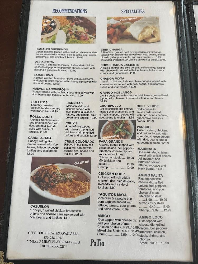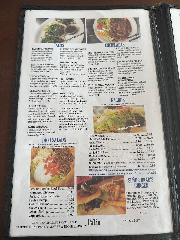 Welcome to PaTio Mexican Restaurant, your go-to destination for authentic Mexican cuisine in West Helena, AR. Enjoy a vibrant ambiance perfect for solo lunches, cozy dinners, or fun group gatherings. With a diverse menu featuring traditional dishes, local specialties, and a selection of excellent cocktails and beers, there’s something for everyone. We offer dine-in, takeout, and delivery services, ensuring convenience without compromising quality. Our accessible facilities cater to all guests, making it easy for everyone to enjoy a taste of Mexico. Join us for a delightful dining experience that keeps locals and tourists coming back for more!